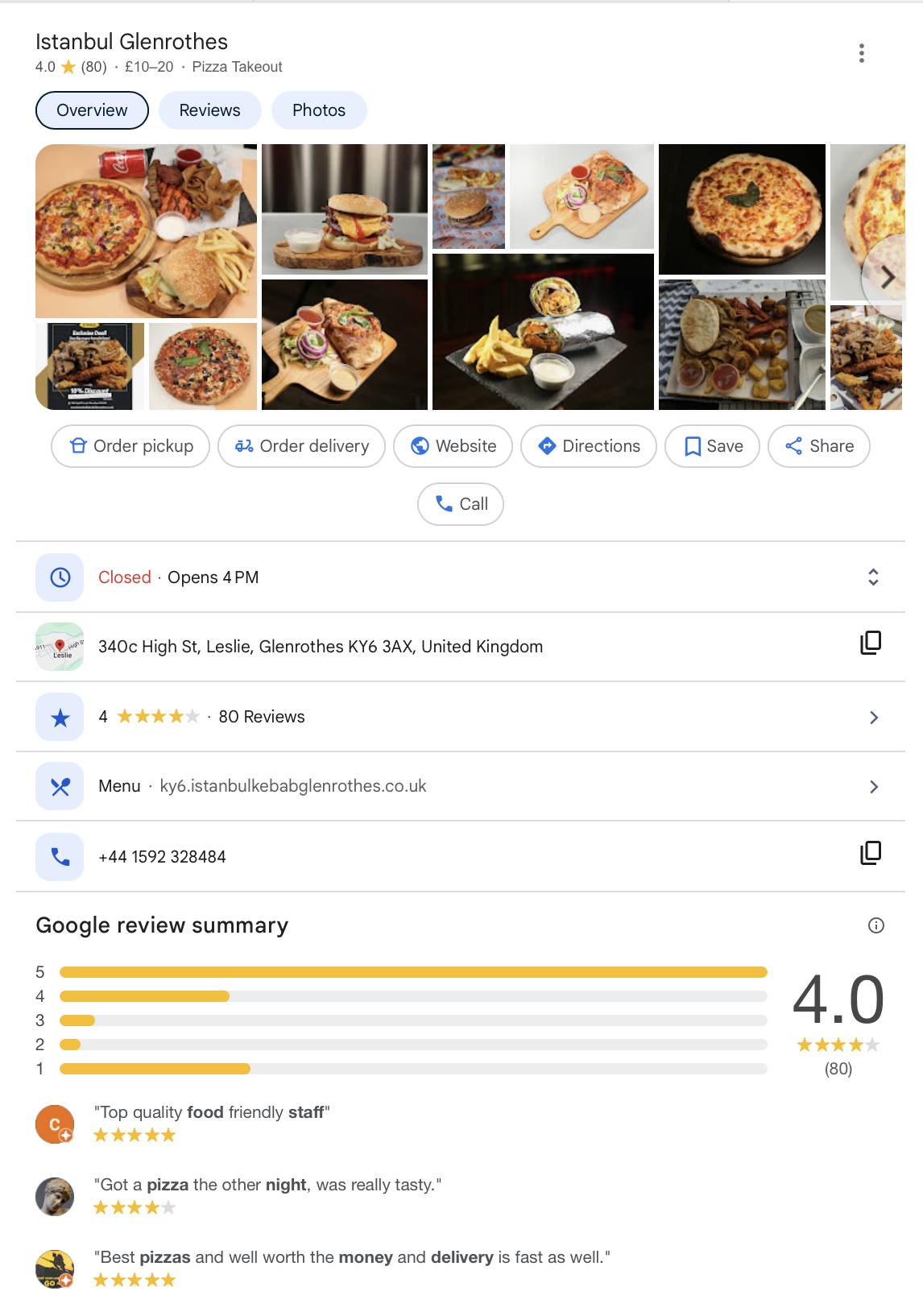 - Reviews & hours - User reviews, opening hours, and daily schedules.